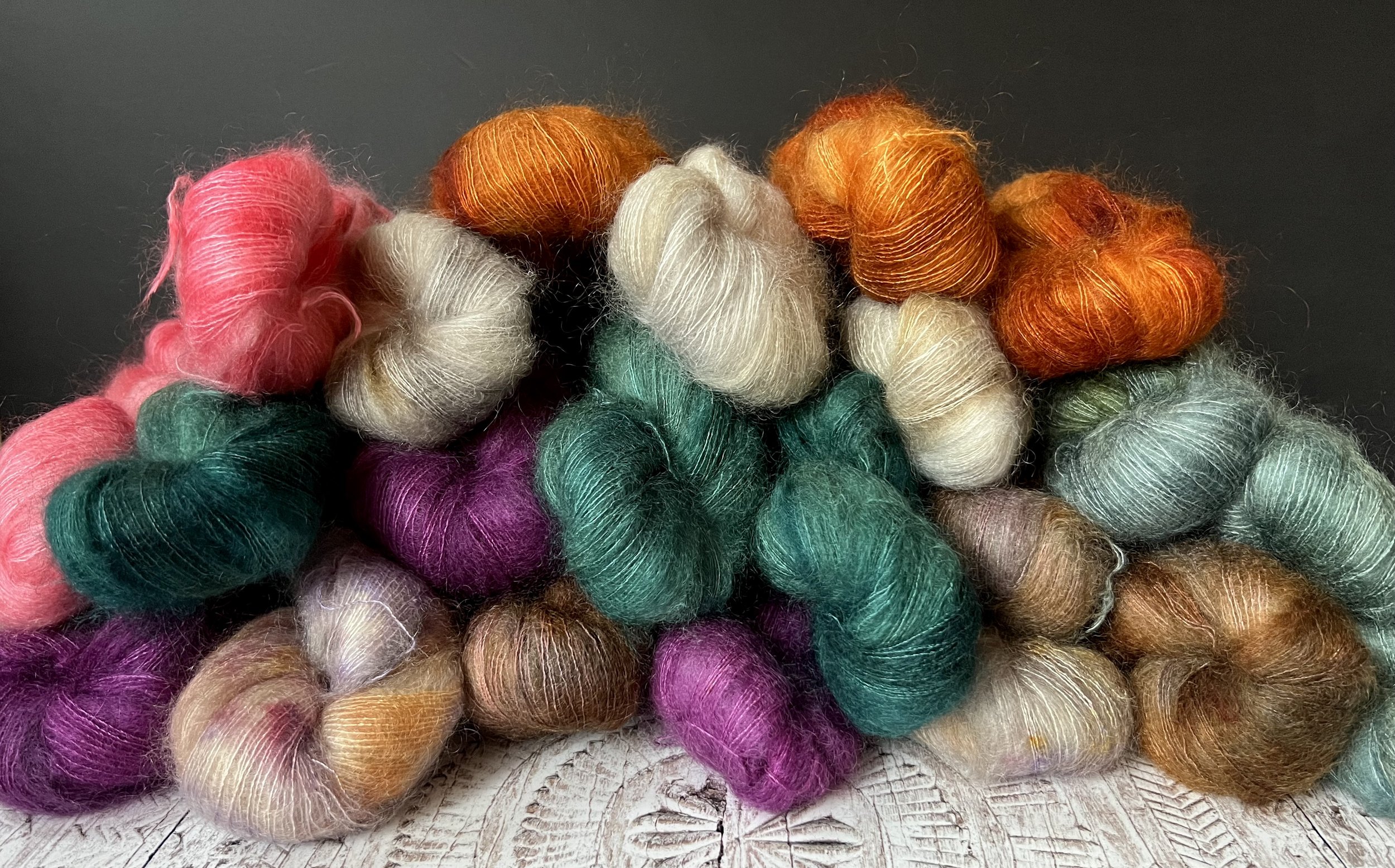 Our yarn bases are carefully selected for their softness, ethical sourcing, and sustainable credentials — with a focus on buttery-soft South American Merino wool and that adheres to full safety compliance. We favour natural fibres, often blended with mulberry silk, flax linen, mohair, or sumptuous yak to create truly distinctive textures.